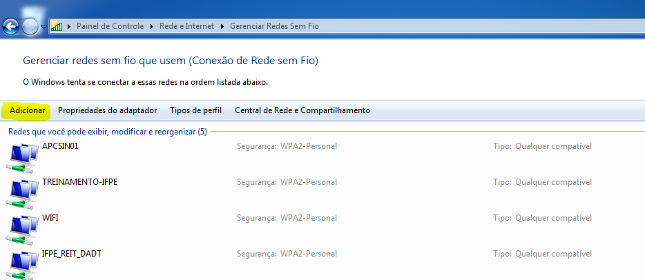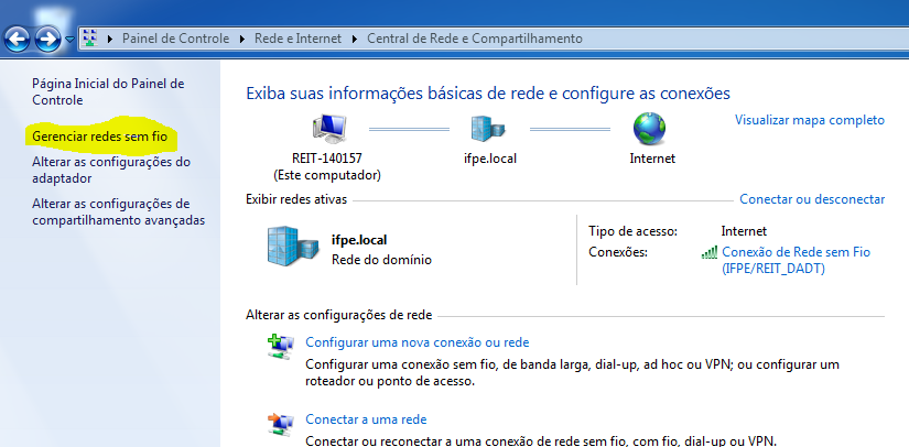 1. Acesse Painel de controle > Central de rede e Compartilhamento. Clique em Gerenciar redes sem fio.