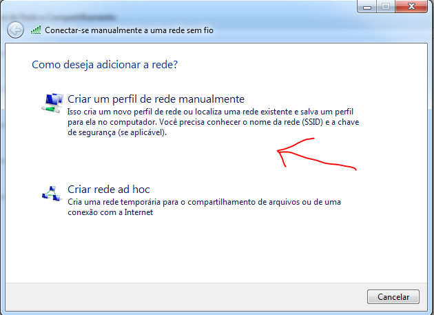 3. Na tela Conectar-se manualmente a uma rede sem fio que se abre, clique em Criar um perfil de rede manualmente.