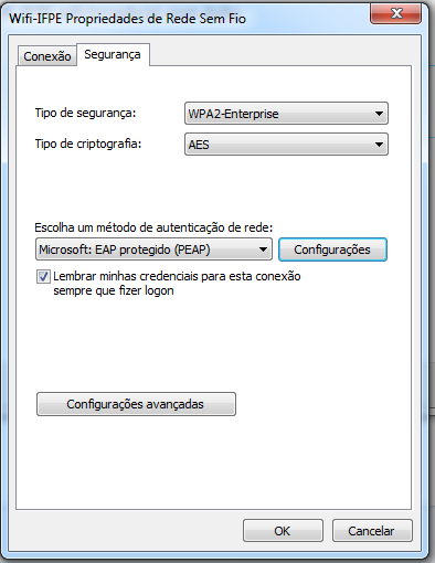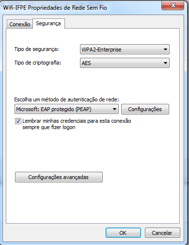 10. Agora na tela Wifi-IFPE Propriedades de Rede sem Fio, clique em Configurações Avançadas.