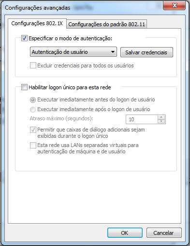 11. Na tela Configurações Avançadas que se abre, marque a opção Especificar o modo de autenticação:, selecione Autenticação de usuário e, clique em OK.