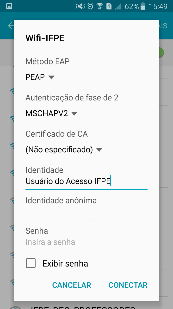 Para configurar a rede Wifi em aparelhos telefônicos com o sistema operacional Android o usuário deverá seguir os seguintes passos: