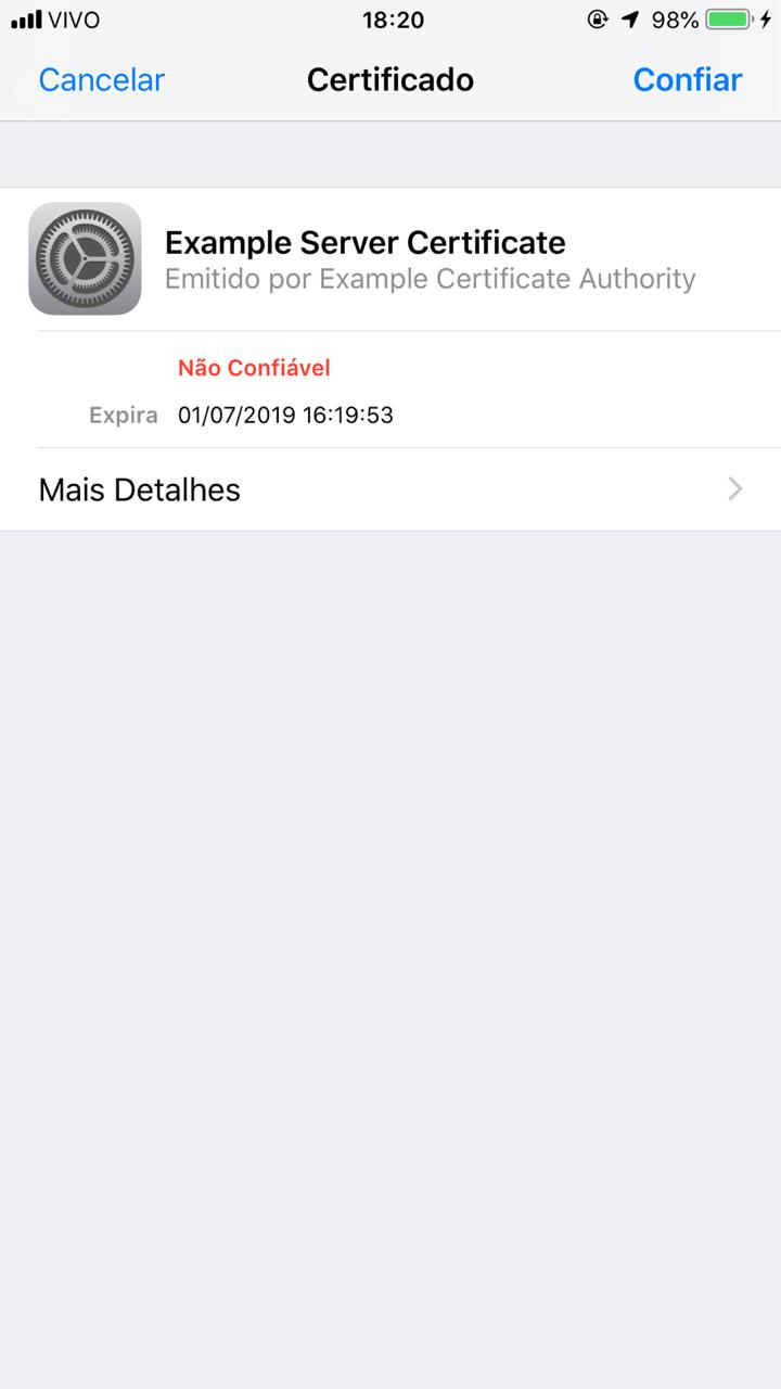 3. Depois de digitar seu usuário e senha clique em conectar, será apresentada uma tela para o usuário com informações sobre o certificado conforme a tela a seguir